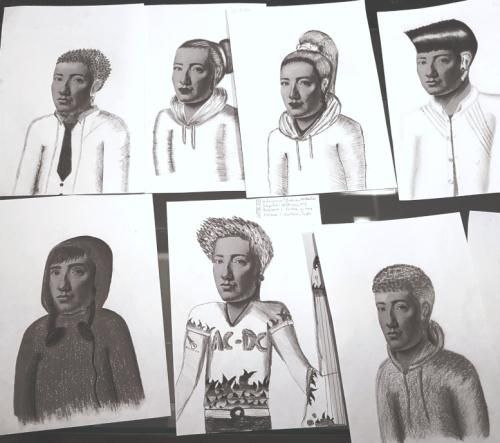 „Ode-an-Heidelberg“, Zeichnung auf Papier, 63 x 54 cm, 2020 Yevken Sirotiuk, 13 Jahre mit einem Vers der Ode