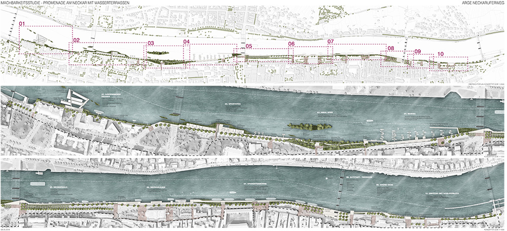 Die in der Machbarkeitsstudie gezeichnete Vision einer Neckaruferpromenade wurde auf Basis vieler Gespräche mit den angrenzenden Vereinen, dem Wasserstraßen- und Schifffahrtsamt und den in der Projektgruppe Stadt an den Fluss beteiligten Fachämtern sowie unteren Behörden entwickelt.