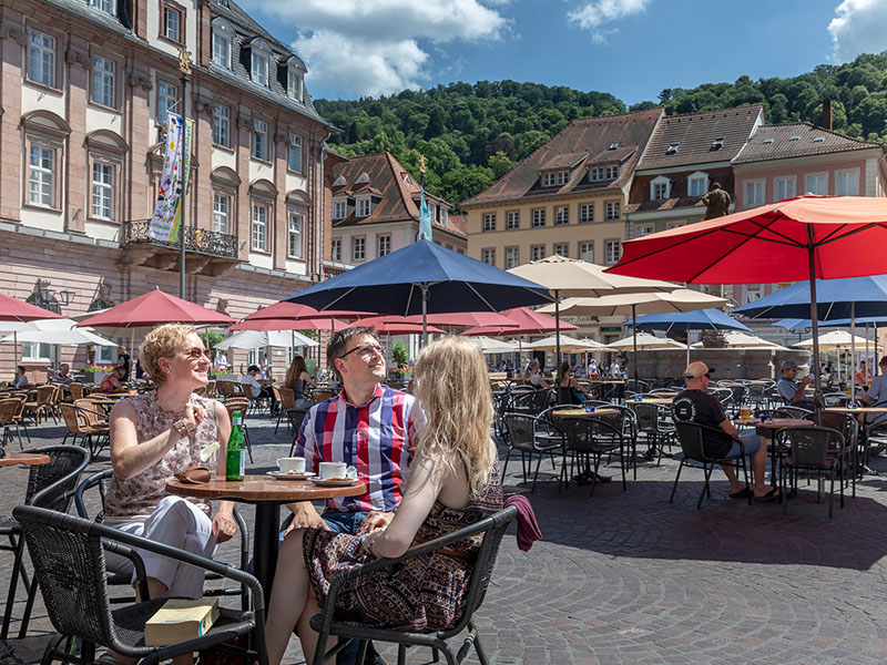 Gemütlich sitzen auf dem Heidelberger Marktplatz (Foto: Buck)