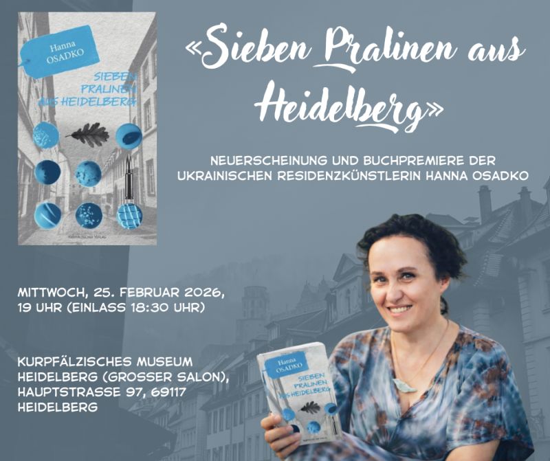 Im Frühjahr 2023 verbrachte Hanna Osadko vier Monate als Stipendiatin der UNESCO-Literaturstadt Heidelberg am Neckar. In dieser Zeit entstand ihr Buch „Sieben Pralinen aus Heidelberg“, in dem sie literarische Feinfühligkeit mit persönlicher Trauerarbeit verbindet.
