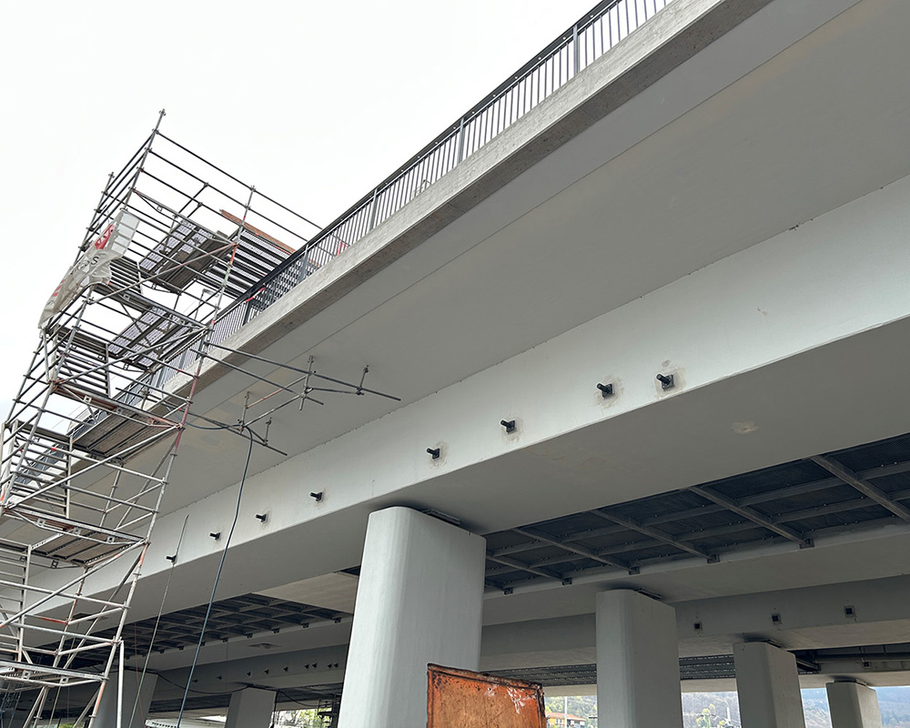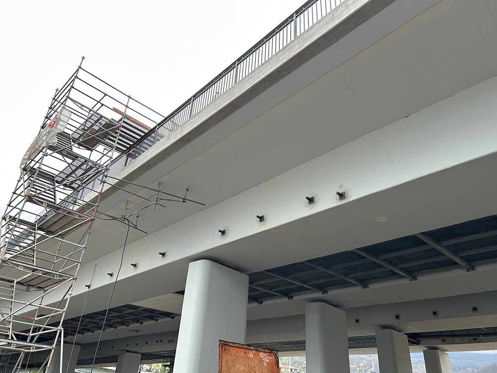 Die Spannbetonbrücke wies bereits zu Beginn der Sanierung weit über 100 Schäden und Mängel auf. Und es wurden noch mehr. Das Problem: Bauen im Bestand. Bei der Modernisierung wurden im Bauverlauf weitere Schadensbilder festgestellt, die vorab nicht erkennbar waren und zusätzliche Leistungen erforderten.