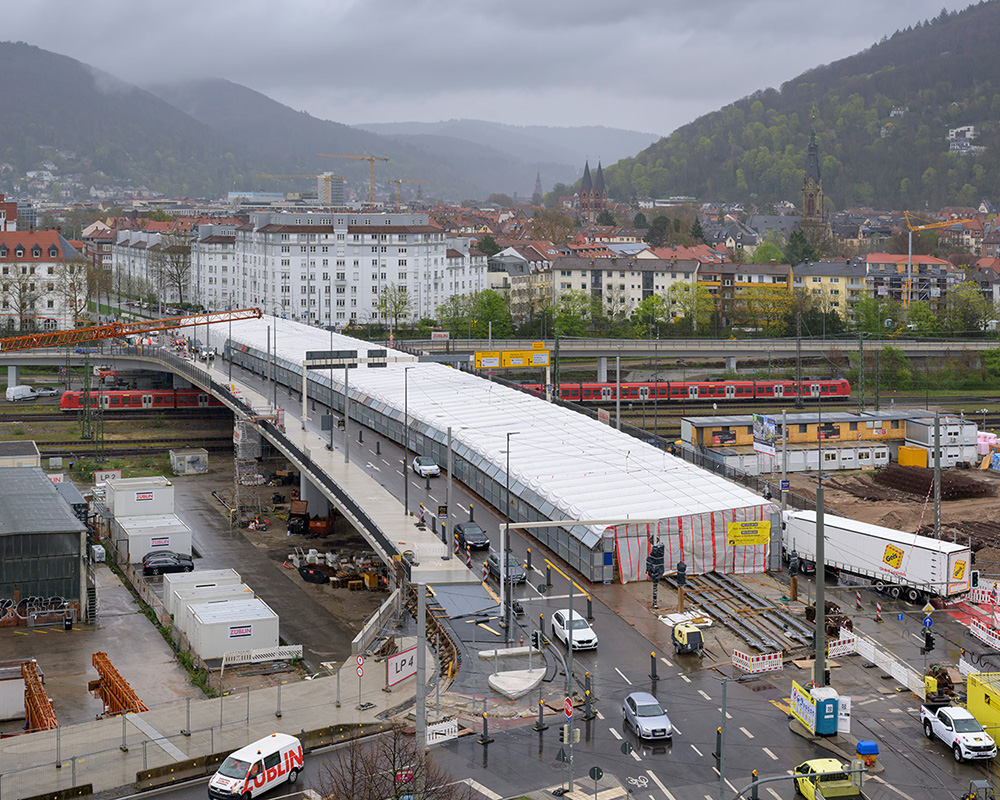Die in den Jahren 1974 bis 1976 erbaute Montpellierbrücke wird derzeit saniert. Ende der Sommerferien 2026 wird die Brücke vollständig fertiggestellt. Die Montpellierbrücke ist 50 Jahre alt und eine der wichtigsten Verkehrsverbindungen Heidelbergs. Die Spannbetonbrücke wies über 100 Schäden und Mängel auf, die die aktuelle Modernisierung der Brücke notwendig machten. Ziel der Baumaßnahme ist, die maximale Lebensdauer der Brücke auf mindestens weitere 25 Jahre nachhaltig zu verlängern und die Brücke tragfähiger zu machen. Nach der Fertigstellung ist die Brücke aufgrund besser geführter Geh- und Radwege sowie barrierefreier Übergänge sicherer für alle Verkehrsteilnehmenden. Die Stadt erhält für die Modernisierung der Brücke eine Förderung vom Land Baden-Württemberg in Höhe von rund 11,1 Millionen Euro. Damit werden rund 30 Prozent der Kosten vom Land übernommen. Zum Abschluss des Bauprojekts muss die Fahrbahn in Richtung Innenstadt in den Sommerferien 2026 für rund zwei bis drei Wochen gesperrt werden. Dabei werden die Fahrbahndecke an der Kreuzung Ring-/Speyerer Straße und die Fahrspur entlang der Gleistrasse erneuert.