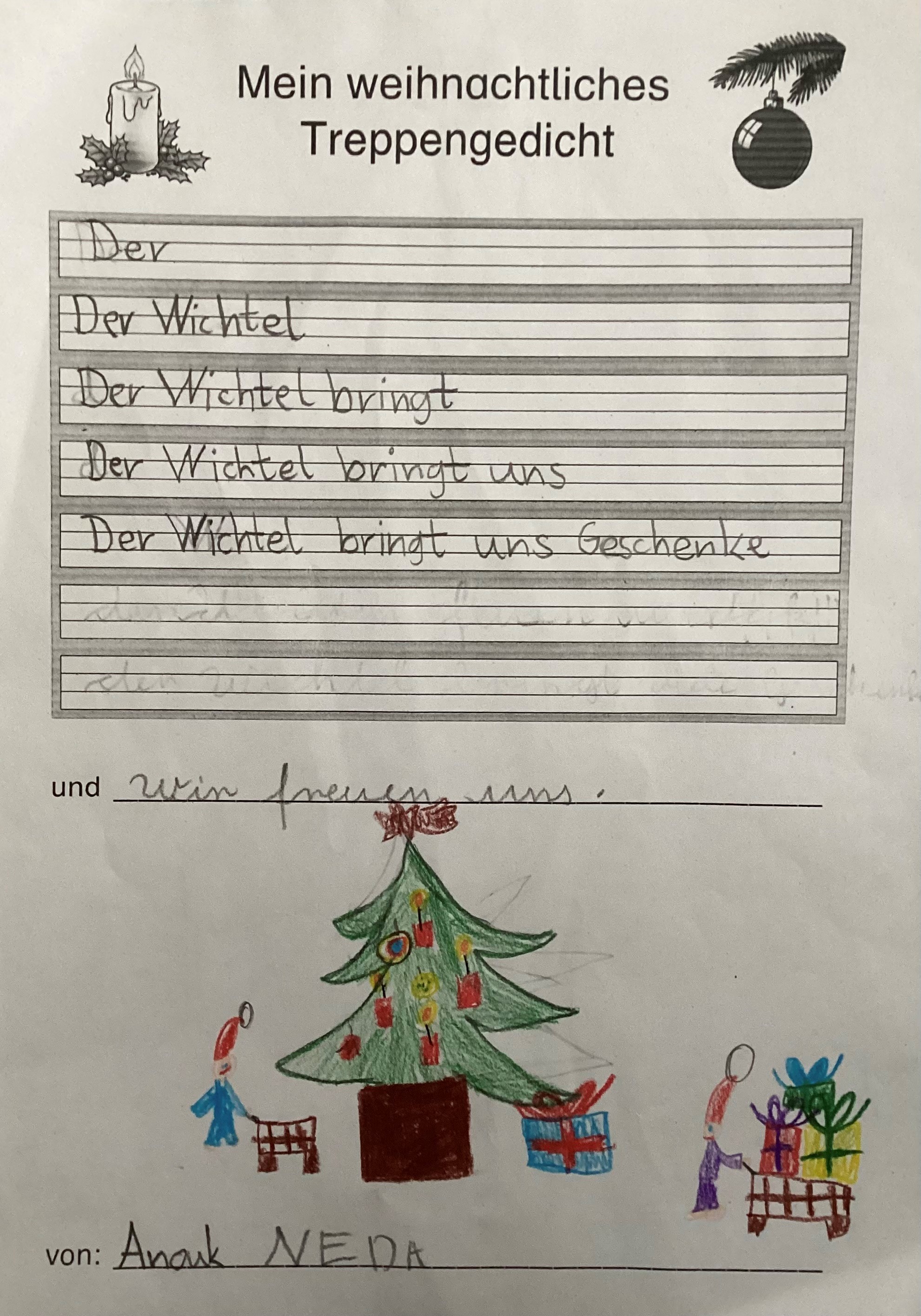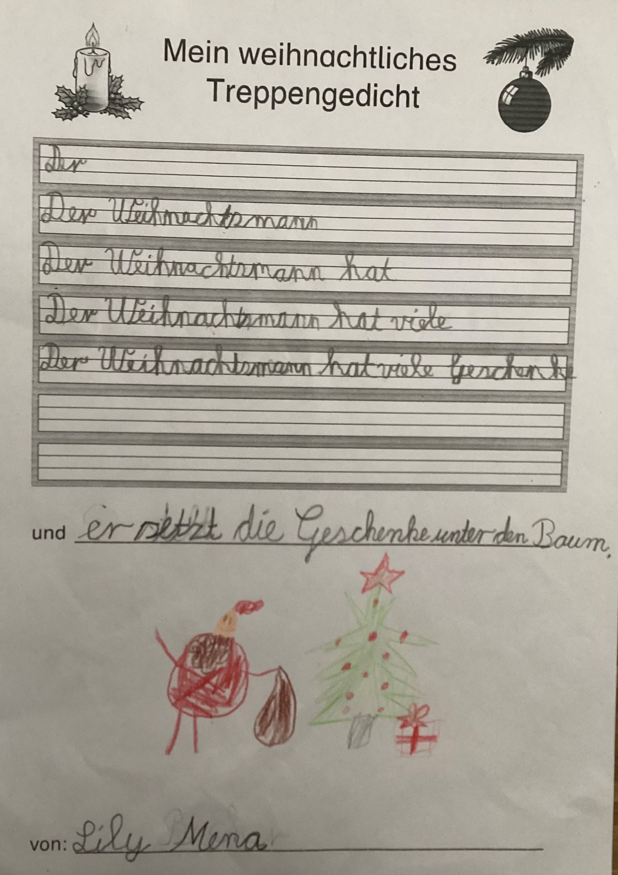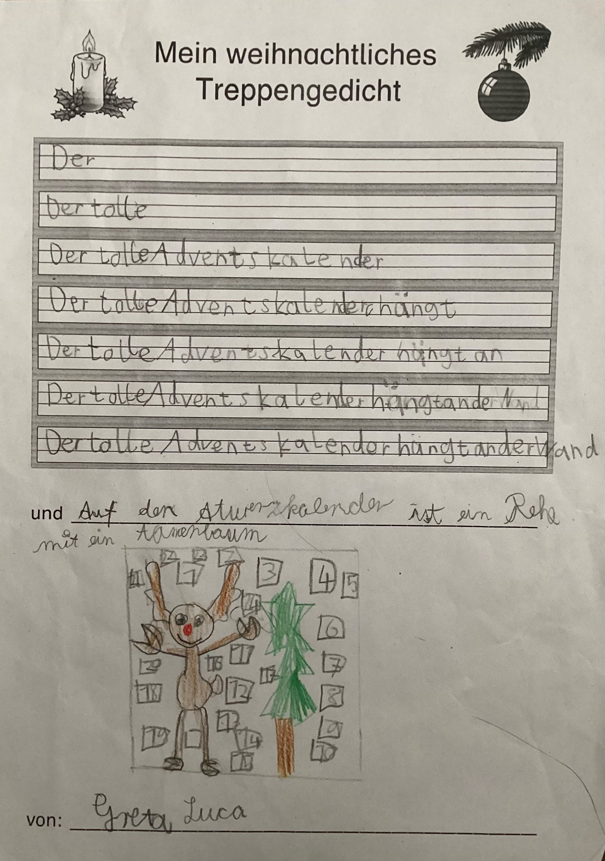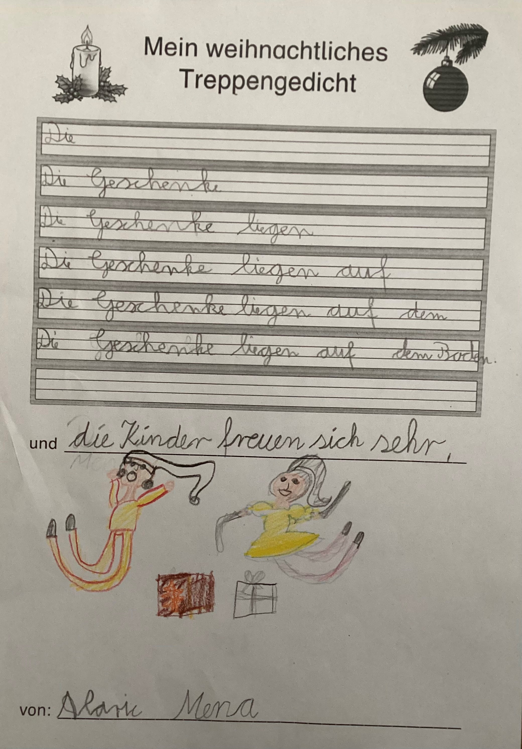 Weihnachtliche "Treppengedichte" mit kreativem Ausklang: