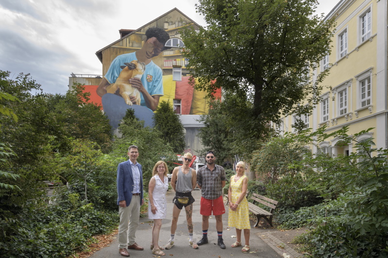 Für attraktive Seitengassen: Großes Wandgemälde schmückt die Plöck