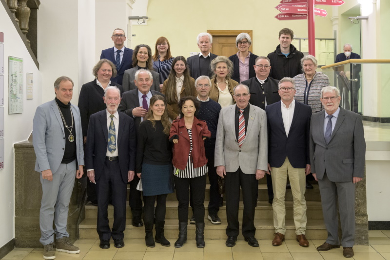 Untere Reihe von links: Oberbürgermeister Prof. Dr. Eckart Würzner, Hans Flor, Hanna Lindenfelser, Claudia Klein, Karl-Heinz Kern, Wolfgang Flörchinger, Manfred Schäfer;