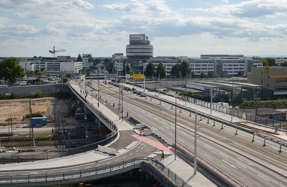 Seit knapp zweieinhalb Jahren wird die rund 50 Jahre alte Montpellierbrücke modernisiert, eine der zentralen Heidelberger Verkehrsachsen nahe dem Hauptbahnhof. Nur so kann sie für weitere 25 Jahre genutzt werden. Dabei wird nicht nur die Brücke saniert und verstärkt, sondern auch die Auf- und Abfahrten. Die Abfahrtsrampe, die von der Brücke auf die Lessingstraße in Richtung West- und Altstadt führt, steht ab Montag, 28. Juli 2025, wieder offen. Alle, die stadteinwärts auf der Brücke unterwegs sind, können damit wieder rechtsabbiegen.