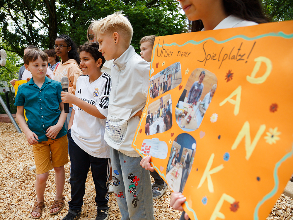 Wer könnte besser wissen, was ein Spielplatz braucht, als die Kinder, die dort spielen? Deshalb wurden Kinder vom Emmertsgrund frühzeitig in die Planung mit einbezogen. Das Ziel war eine lebendige und kindgerechte Stadtentwicklung, die das Miteinander im Quartier stärkt und einen lebendigen Treffpunkt für Kinder und Familien schafft.