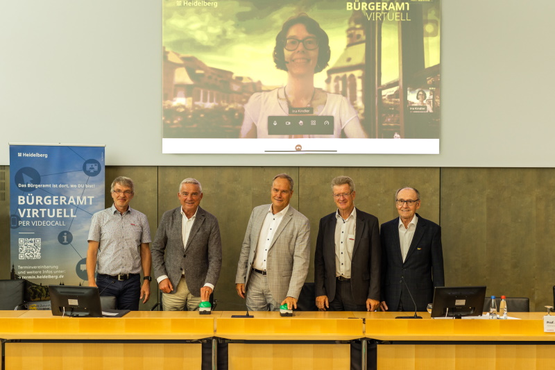 Von der Anmeldung des Wohnsitzes über das Beantragen von Pässen und Ausweisen bis hin zur Zulassung von Fahrzeugen: Als „kleine Rathäuser vor Ort“ bieten die Heidelberger Bürgerämter den Bürgerinnen und Bürgern einen umfassenden, persönlichen Service. Die neueste Außenstelle kann dabei sogar bequem von zu Hause erreicht werden: das virtuelle Bürgeramt. Am Rande der Digitalministerkonferenz D16 in Heidelberg präsentierte Oberbürgermeister Prof. Dr. Eckart Würzner die neue Außenstelle der Heidelberger Bürgerämter zusammen mit dem stellvertretenden Ministerpräsidenten und Minister des Inneren, für Digitalisierung und Kommunen Thomas Strobl.