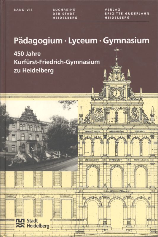| Band VII Pädagogium - Lyceum - Gymnasium. 450 Jahre Kurfürst-Friedrich-Gymnasium zu Heidelberg. Mit Beiträgen von Volker Gewahl. Verlag Regionalkultur & Edition Guderjahn, Heidelberg - Ubstadt-Weiher 1996. ISBN 3-924973-49-0 € 24.80 Vergriffen! Ansichtsexemplar im Lesesaal des Stadtarchivs einsehbar. | 7. |  |