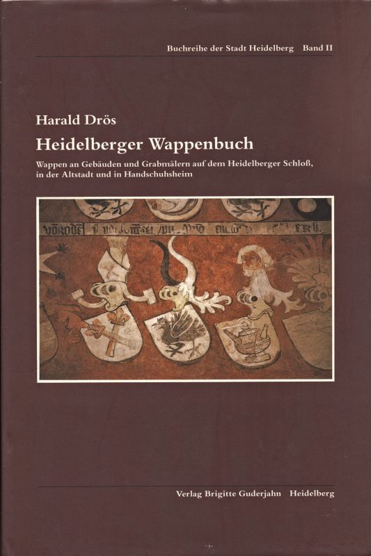 | Band II Harald Drös: Heidelberger Wappenbuch. Wappen an Gebäuden und Grabmälern auf dem Heidelberger Schloß, in der Altstadt und in Handschuhsheim. Verlag Regionalkultur & Edition Guderjahn, Heidelberg - Ubstadt-Weiher 1991. ISBN 3-924973-44-X € 32,80 Vergriffen! Ansichtsexemplar im Lesesaal des Stadtarchivs einsehbar. | 2. |  |