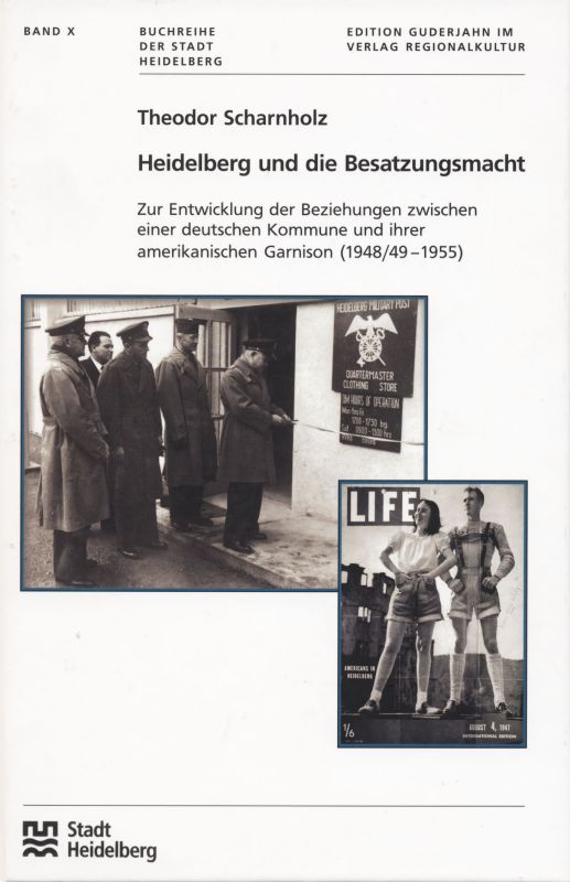 | Band X Theodor Scharnholtz: Heidelberg und die Besatzungsmacht. Zur Entwicklung der Beziehungen zwischen einer deutschen Kommune und ihrer amerikanischen Garnison (1948/49-1955). Verlag Regionalkultur & Edition Guderjahn, Heidelberg - Ubstadt-Weiher 2002. ISBN 3-89735-193-5 € 22,80 | 10. |  |