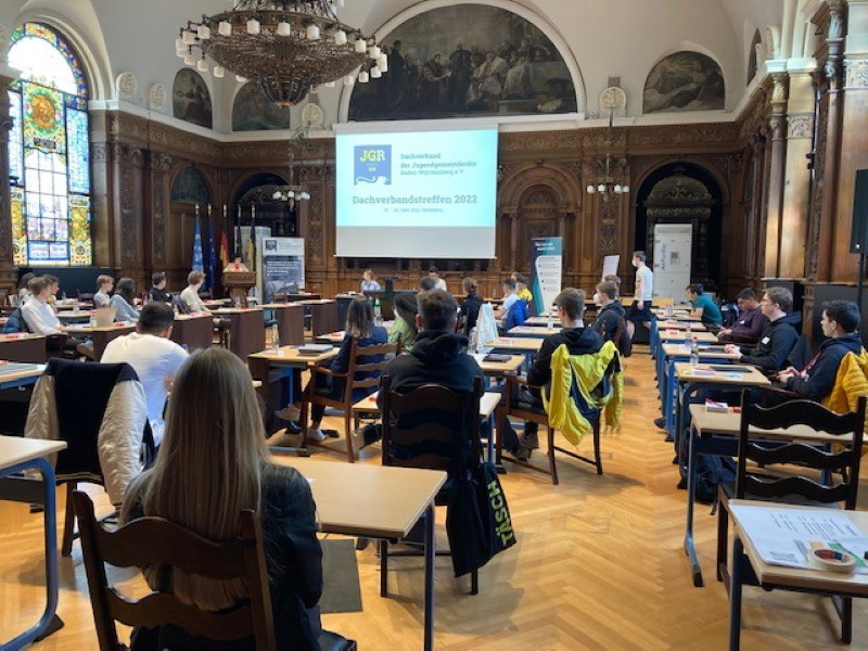 Am Wochenende vom 22. bis 24. April 2022 fand das Treffen des Dachverbandes der Jugendgemeinderäte Baden-Württemberg in Heidelberg statt. Bürgermeisterin Stefanie Jansen begrüßte die Jugendgemeinderätinnen und Jugendgemeinderäte im Rathaus. Neben zahlreichen Möglichkeiten zum wechselseitigen Austausch stand ein Planspiel zum Thema Nachhaltigkeit und Klima auf dem Programm. Außerdem wurden interaktive Workshops zu den Themen Rhetorik und Jugendgemeinderat-Organisation sowie ein kleiner Debating-Wettkampf angeboten. Am letzten Tag ging es thematisch um die Stadtgestaltung der Zukunft am Beispiel der Bahnstadt Heidelberg mit einer abschließenden Fish-Bowl-Diskussion mit Politikerinnen und Politikern sowie Experten.