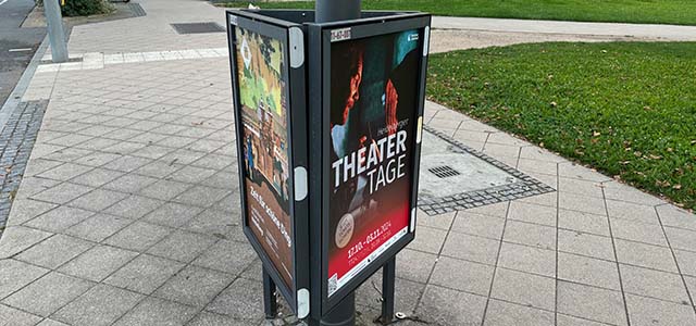 Die stadtweiten Plakatträger dienen der Werbung für Veranstaltungen, die in Heidelberg stattfinden.