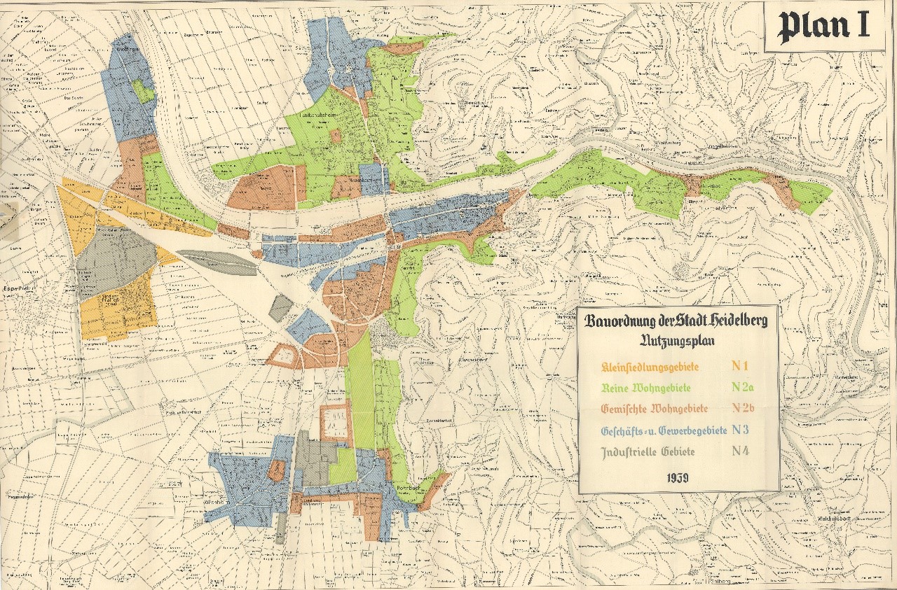 Die Karten- und Plansammlung nimmt ihren Anfang mit Gemarkungs- und Flurkarten ab dem Ende des 18. Jahrhunderts. Ein Schwerpunkt der früheren Objekte sind Flur- und Forstkarten. Stadtpläne und Stadtentwicklungspläne liegen in dichter Folge ab der Mitte des 19. Jahrhunderts vor. Abgesehen von eher allgemeinen Flurkarten und Stadtplänen gibt es auch speziellere Pläne: Friedhofsbelegungspläne, Pläne zur Verkehrsführung, Bevölkerungsstruktur, Flächennutzungspläne, Bepflanzungspläne zu öffentlichen Plätzen etc. Auch zu einzelnen Gebäuden und Plätzen in Heidelberg und den Vororten bietet die Sammlung Material, etwa zu der Stadthalle, dem Neubau des Hauptbahnhofes, dem Gestaltungswettbewerb für den Kornmarkt oder den verschiedenen Bauten auf dem Heiligenberg. Die Plansammlung speist sich zum größten Teil aus der Überlieferung der städtischen Ämter, enthält aber auch private Pläne, wie zum Beispiel die eigenhändigen Zeichnungen des Heimatforschers Ludwig Merz zu prähistorischen und historischen Befunden. Die Plansammlung umfasst einige Tausend Objekte. Statikunterlagen werden zwar im Stadtarchiv verwahrt und bestehen ebenfalls aus Plänen, aus logistischen Gründen sind sie jedoch als eigener Bestand zusammengefasst und kein Teil der Karten- und Plansammlung. Neben dem Stadtarchiv Heidelberg bewahrt auch das Amt für Baurecht und Denkmalschutz eine große Anzahl von Plänen zu Einzelgebäuden auf.