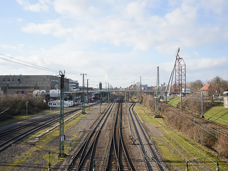Die Rad- und Fußwegebrücke überquert die Bahngleise von der Ochsenkopfwiese in Bergheim bis zum Luxor-Kino in der Bahnstadt. Sie schafft eine direkte, auto- und barrierefreie Verbindung für Radfahrende, Fußgängerinnen und Fußgänger.