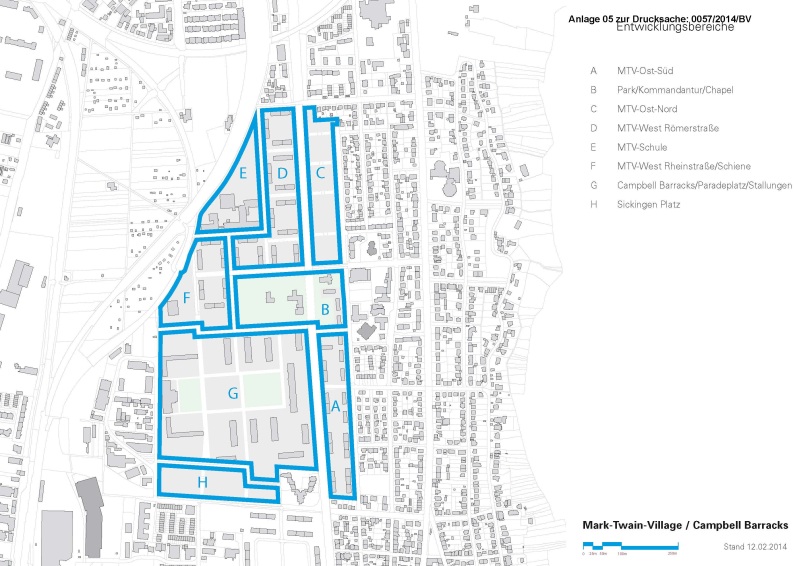 Die Konversionsfläche Südstadt ist insgesamt in acht (A - G) Entwicklungsbereiche unterteilt. Aufgrund unterschiedlicher Nutzungen, Interessensgruppen, Planungsbedarfe und Entwicklungsperspektiven wurde die Gesamtfläche in Teilbereiche unterteilt, für die zum aktuellen Stand unterschiedliche Aussagen zur weiteren Bearbeitung definieren.