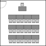 Der kleine Saal mit etwa 57 m² eignet sich für Veranstaltungen, die sich an kleinere Zielgruppen richten. Mit einer Vortragsbestuhlung finden hier maximal 49 Personen Platz. Bei anderen Bestuhlungsformen 20 bis 28 Personen.