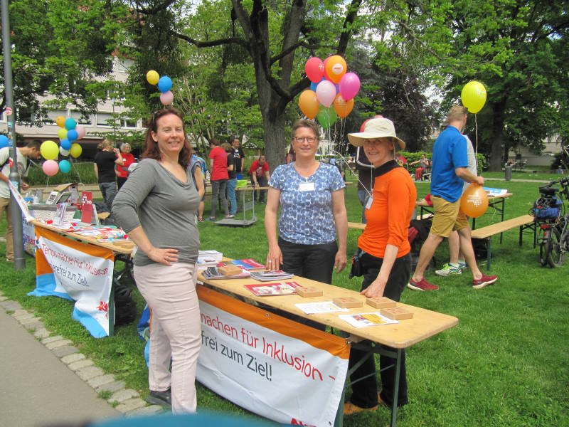 Beteiligung am Informationsstand des Büros für Inklusion zum Europäischen Protesttag der Menschen mit Behinderungen am 7. Mai in der Schwanenteichanlage.
