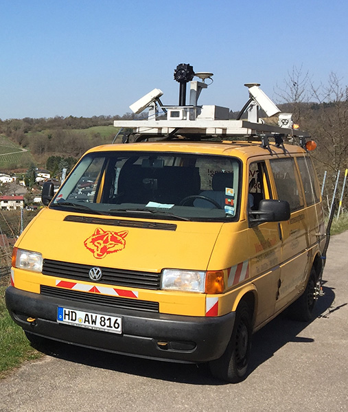 Das Fahr-zeug macht Fotos von allen Wegen und Straßen in Heidel-berg.