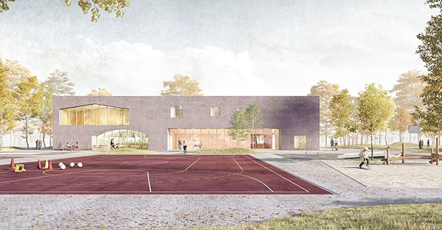 Das neue Gebäude ist aus Beton und Holz.
