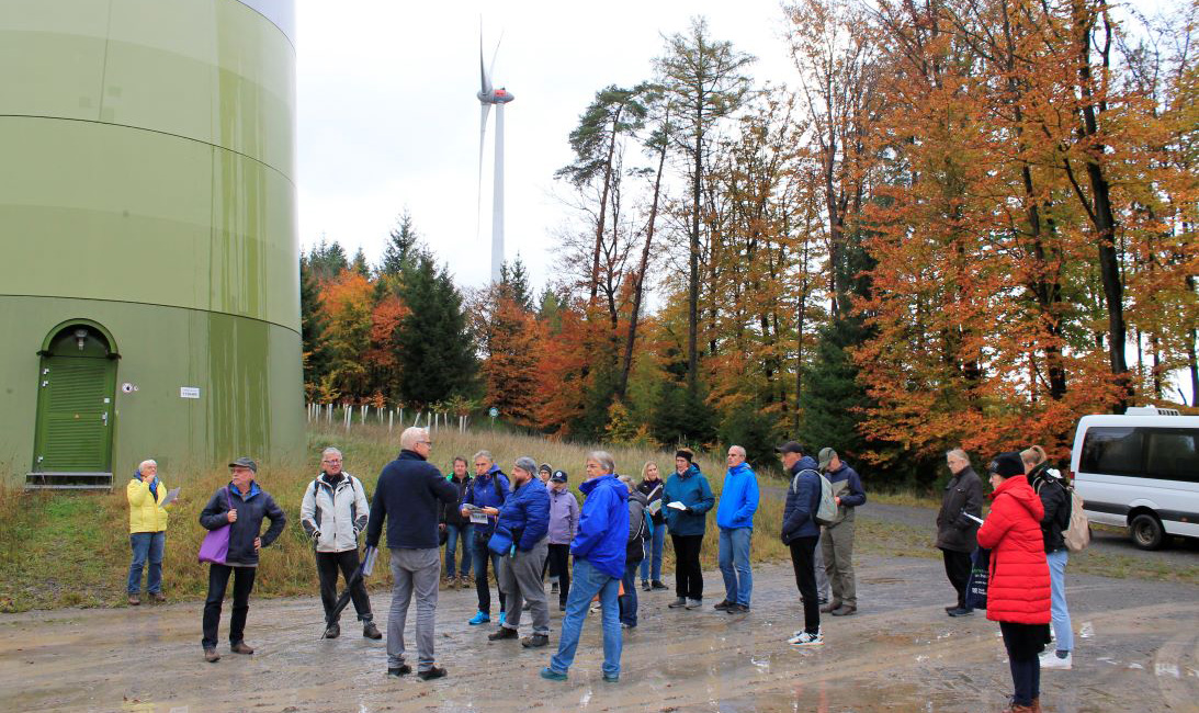 Technikraum, Geräuschkulisse, Außengelände, Gesamteindruck: Rund 20 Interessierte hatten am Dienstag, 7. November 2023, Gelegenheit, sich ein Windrad ganz aus der Nähe anzusehen. Das Umweltamt der Stadt Heidelberg hatte alle Interessierten zu einer Fahrt zum bestehenden Windpark Greiner Eck nahe dem Neckarsteinacher Ortsteil Grein eingeladen. Vor Ort erläuterten Ralf Bermich vom Umweltamt und Micha Jost, Vorstand der Energiegenossenschaft Starkenburg, ausführlich Details zur Technik, zum Bauablauf, zu den Auswirkungen auf Tiere, Wald und Umwelt sowie zum Energieertrag. Der Energiegenossenschaft Starkenburg gehört eines der Windräder am Greiner Eck; sie ist zudem an der Bietergemeinschaft beteiligt, die den Windpark Lammerskopf verwirklichen wird. mehr dazu