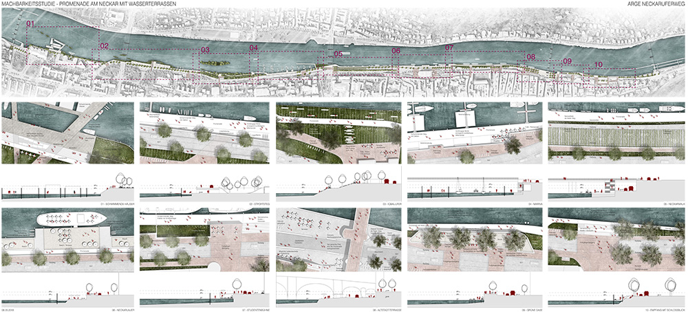 Die in der Machbarkeitsstudie gezeichnete Vision einer Neckaruferpromenade wurde auf Basis vieler Gespräche mit den angrenzenden Vereinen, dem Wasserstraßen- und Schifffahrtsamt und den in der Projektgruppe Stadt an den Fluss beteiligten Fachämtern sowie unteren Behörden entwickelt.