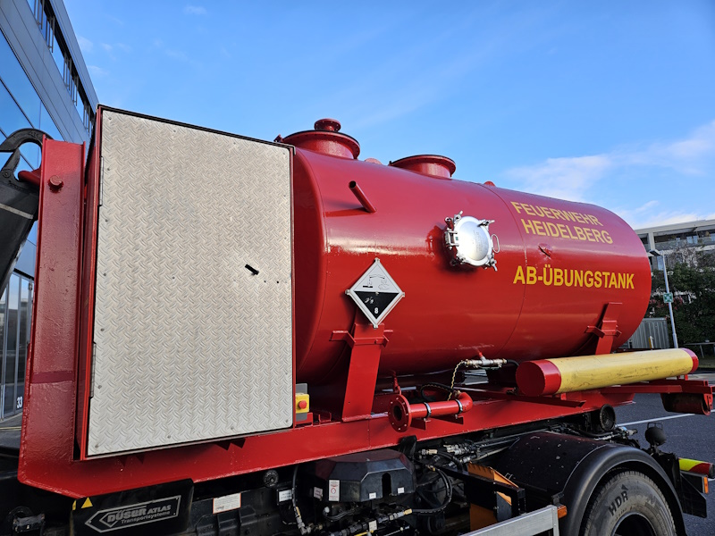 Um solche Lagen üben zu können, verfügt die Feuerwehr Heidelberg über den Abrollbehälter Übungstank