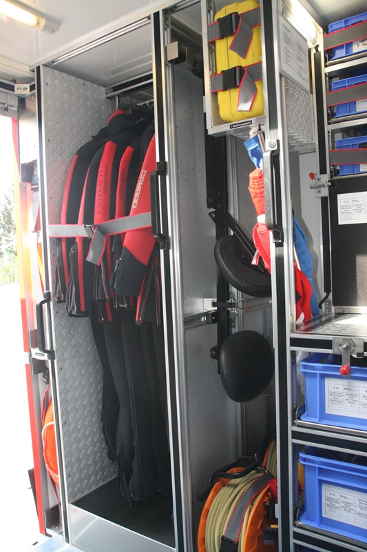 Der GW-Wasserrettung ist ein Fahrzeug für Rettungseinsätze auf Gewässern, bei denen Taucher und das Rettungsboot eingesetzt werden. Das hierfür benötigte Equipment wird im Mannschaftsraum sowie im Heckbereich des Fahrzeugs mitgeführt.