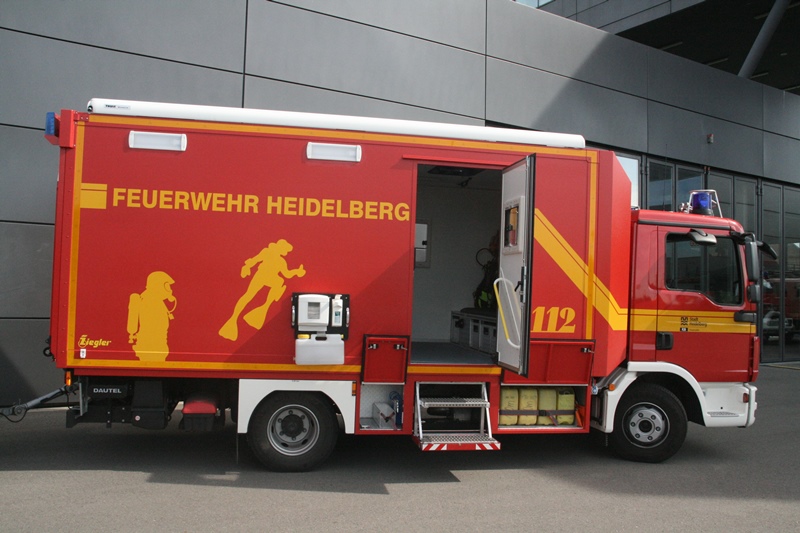 Wird die Tauchergruppe der Berufsfeuerwehr Heidelberg alarmiert, so ist der GW Wasserrettung deren Haupteinsatzmittel.