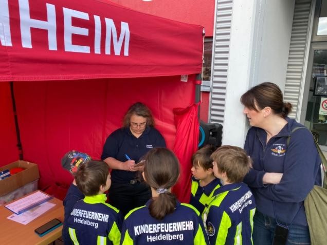 Für die Anmeldungsformalitäten und die Schätzfrage hatte man den damaligen Gründer und derzeitigen Stadtbrandmeister der Freiwilligen Feuerwehr Heidelberg Uwe Bender, gewissermaßen als Schirmherr gewinnen können. Das Team um Silke Giebel hatte an 10 markanten Orten rund um das Feuerwehrgerätehaus Kirchheim Aufgaben aus dem Bereich Sport, Spiel, Feuerwehr und viel Spaß vorbereitet die die Kindergruppen zu bewältigen hatten. Neben einem klassischen Löschangriff mussten auch Disziplinen wie Stiefelweitwurf, Leitergolf, Schlauchkegeln, Puzzle, Gedächtnis-Kiste und vieles mehr absolviert werden. Bei den verschiedenen Aktivitäten konnten dann auch fleißig Punkte gesammelt werden, welche dann am Ende addiert wurden.