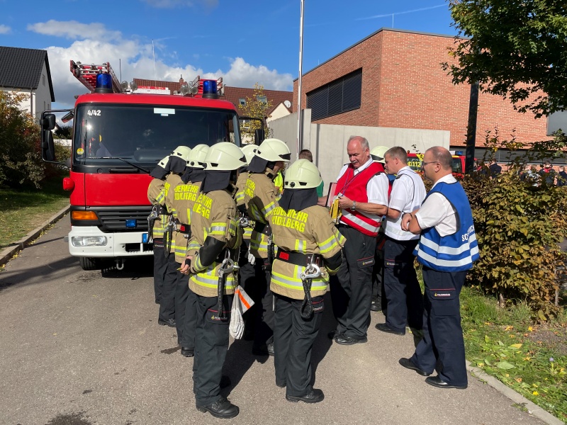 Dass sich das intensive Üben im Vorfeld gelohnt hat, zeigte sich beim Absolvieren des vorgegebenen Löschangriffs mit Menschenrettung über die Steckleiter. Beide Gruppen waren mit 6:03 Minuten und 5:40 Minuten beide Male deutlich unter der vorgegebenen Höchstzeit von sieben Minuten geblieben.
