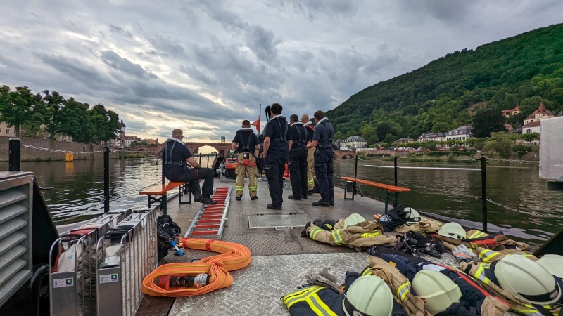 Um hier effektiv helfen zu können, kommt seit mehreren Veranstaltungen ein Behelfslöschboot zum Einsatz, welches gemeinsam mit dem Wasserstraßen- und Schifffahrsamt Neckar (WSA) und der Feuerwehr Heidelberg betrieben wird.