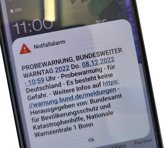 Nach dem erfolgreichen Test am bundesweiten Warntag ist am 23. Februar 2023 das neue Warnsystem Cell Broadcast bundesweit in den Regelbetrieb gegangen.