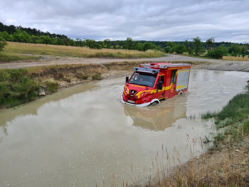 Aufgrund des ungewohnten Fahrverhaltens gegenüber normalen Löschfahrzeugen wurde zunächst das Handling mit den gelängegängigen Fahrzeugen trainiert. Hier ermöglichte die Bundeswehr eine Intensivausbildung der Fahrer auf dem Geländeübungsplatz der Panzerkaserne in Hardheim. Ein erfahrener Fahrerlehr der Bundeswehr schulte die Einsatzkräfte wie in unwegsamen Gelände, an Steigungen und Neigungen richtig zu fahren ist. Auch das Durchfahren von tiefem Wasser gehörte zur Ausbildung, wo mit auch die Einsatzoption bei Hochwasserlagen berücksichtigt wurde.