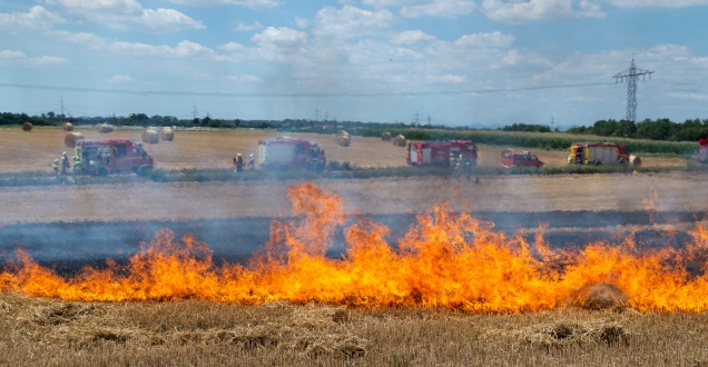 Das Stoppelfeld wurde hierzu in kleine Bereiche unterteilt und gezielt Schneisen ohne Brandgut gepflügt, so dass sich das Übungsfeuer kontrolliert und nur bedingt ausbreiten konnte.