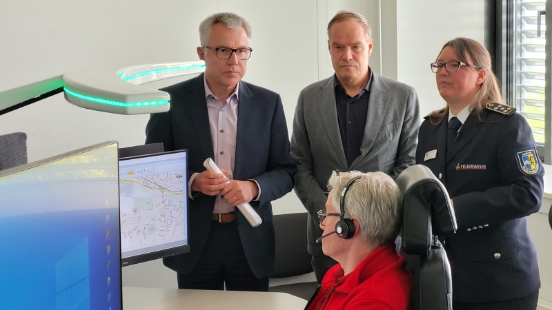 Stefanie Heck, Geschäftsführerin der ILS GGmbH, Landrat Stefan Dallinger und Oberbürgermeister Prof. Dr. Eckart Würzner hoben in ihren Grußworten die Bedeutung der neuen Leitstelle, die für rund 700.000 Einwohnerinnen und Einwohner im Rhein-Neckar-Kreis und der Stadt Heidelberg Notrufe entgegennimmt und die notwendigen Rettungsmittel disponiert.