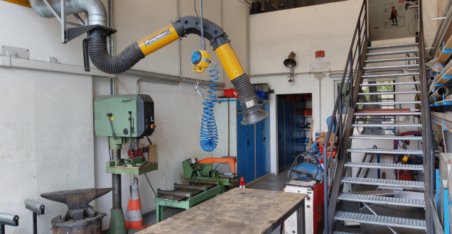 Bleche müssen zurechtgebogen und mit dem Fahrzeug verschweißt oder verschraubt werden, damit die neue Ausrüstung sicher verstaut werden kann. In der Schlosserei können die hierzu erforderlichen Metallarbeiten durchgeführt werden. Bandsäge, Schweißgerät und weitere Werkzeuge stehen hierfür zur Verfügung.
