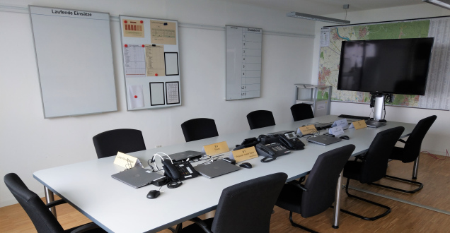 So ist zum Beispiel ein permanent aufgebautes PC-Netzwerk samt Stabssoftware vorhanden. Einsatz- und Alarmpläne stehen digital sowie in Papierform zur Verfügung.