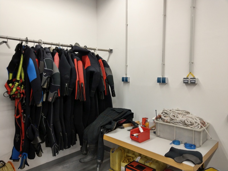 Im Taucherraum werden die Tauchkleidung und die für Tauchvorgänge erforderlichen Utensilien aufbewahrt.