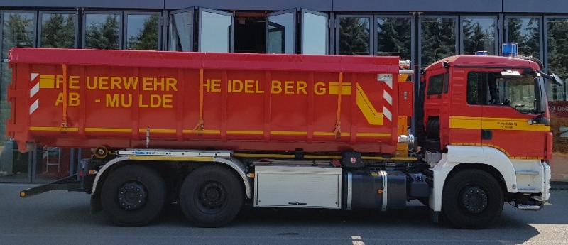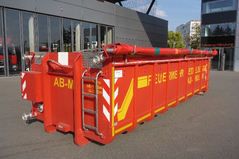 Bei dem Abrollbehälter Mulde (AB-M) handelt es sich um einen flüssigkeitsdichten Abrollbehälter nach DIN 14505 mit Rollplanenverschluss und einem Fassungsvermögen von 22 m³. Der AB-M kann für unterschiedliche Einsatzszenarien genutzt werden, wie zum Beispiel: