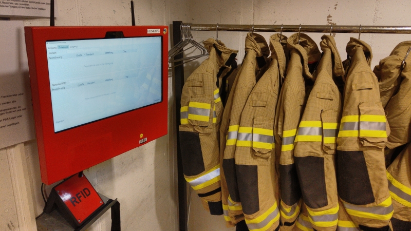 Da die Kleidung nicht mehr dauerhaft persönlich zugeordnet ist, wird die zurückgegebene Kleidung ausgecheckt und die aus dem Poll entnommene Schutzkleidung auf die jeweilige Person registriert. Hierzu steht ein Terminal zur Verfügung, dass die Daten der Kleidung entweder über einen Barcode oder den in der Kleidung eingearbeiteten RFID Chip ausliest.