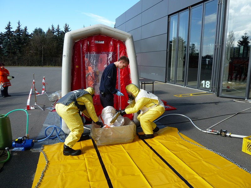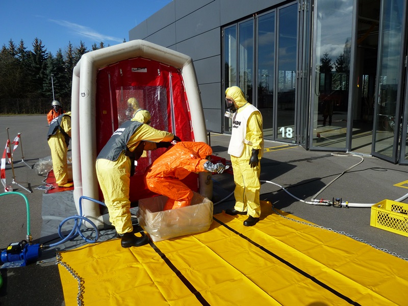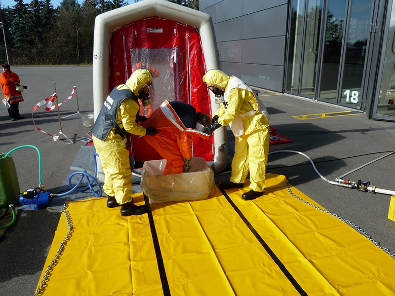 Die Abläufe zur Durchführung einer ordnungsgemäßen Personendekontamination müssen regelmäßig geübt werden, damit im Einsatzfall keine Dekontaminationsverschleppung erfolgt.