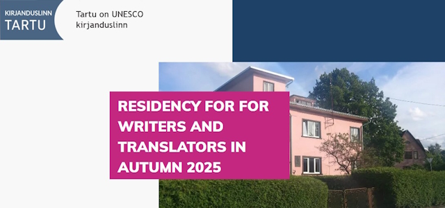 Archiv früherer oder derzeit nicht aktueller Ausschreibungen und Aufrufe Tartu: Residency for for writers and translators in autumn 2025 Taif City of Literature Writers´ Retreat 2025 Vilnius Literary Residency 2025 Prague – UNESCO City of Literature 2026 residency program Virtual Writer in Residence Program by Melbourne UNESCO City of Literature Bucheon City of Literature Residency Program 2025 Granada Writers in Residence Programme 2025 Heidelberger Autor:innenpreis Ronald Duncan Archive Stipend 2025 Nanjing International Writers’ Residencies 2025 POETIC FREQUENCIES. Exploring the Resonance of Videopoetry AIR Litteratur Västra Götaland announces residency sholarships Caselberg Trust Margaret Egan Cities of Literature Writers Residency 2025 Literaturresidenz in Tartu 2025 Eine Stadt schreibt! Buchtitel für Wandbild gesucht