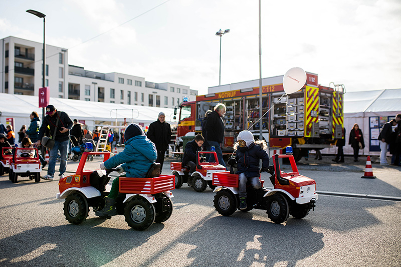 Bobbycar-Parcours, Hüpfburg, Präsentation von Feuerwehrfahrzeugen (Feuerwehr Heidelberg)