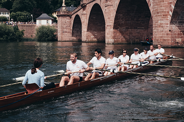 Zu diesem Zeitpunkt hatten sich dann auch alle Wolken über Heidelberg verzogen und bei schönstem Sonnenschein absolvierte das Paar die rund einen Kilometer lange Strecke Richtung Theodor-Heuss-Brücke. Tausende Menschen an beiden Ufern feuerten die Sportler an. Im Ziel hatte dann das Boot von William einen kleinen Vorsprung. Bei der anschließenden Siegerehrung an der Wasserschachtel in der Nähe der Theodor-Heuss-Brücke erhielten dennoch alle Ruderer dieselbe Medaille.