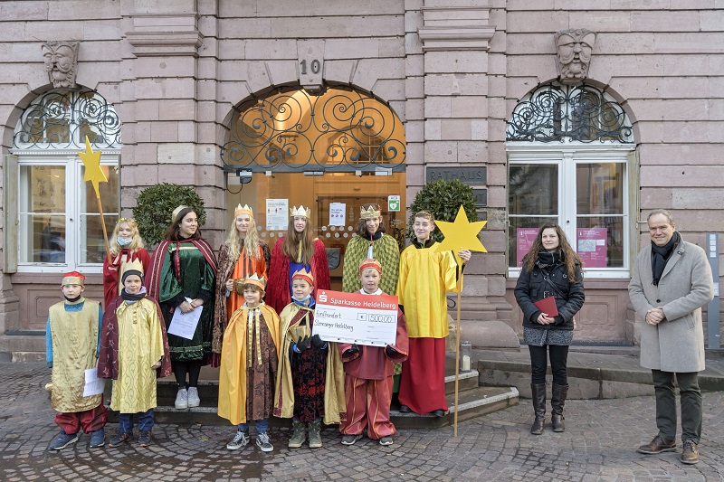 Zum Jahresbeginn sind die Sternsinger der Pfarrgemeinden Heidelbergs wieder unterwegs. Verkleidet als die Heiligen Drei Könige Caspar, Melchior und Balthasar verkünden sie den Segen „Christus Mansionem Benedicat“. Das steht für: „Christus segne dieses Haus und alle, die drin gehen ein und aus.“ Am Mittwoch, 5. Januar, besuchte eine Sternsingergruppe aus Wieblingen mit Tanja Becker, Gemeindereferentin der Katholischen Kirche, auch das Rathaus und wurde von Oberbürgermeister Prof. Dr. Eckart Würzner empfangen. Das Stadtoberhaupt dankte den Kindern und Jugendlichen für ihren Einsatz und spendete 500 Euro aus seinen persönlichen Verfügungsmitteln.