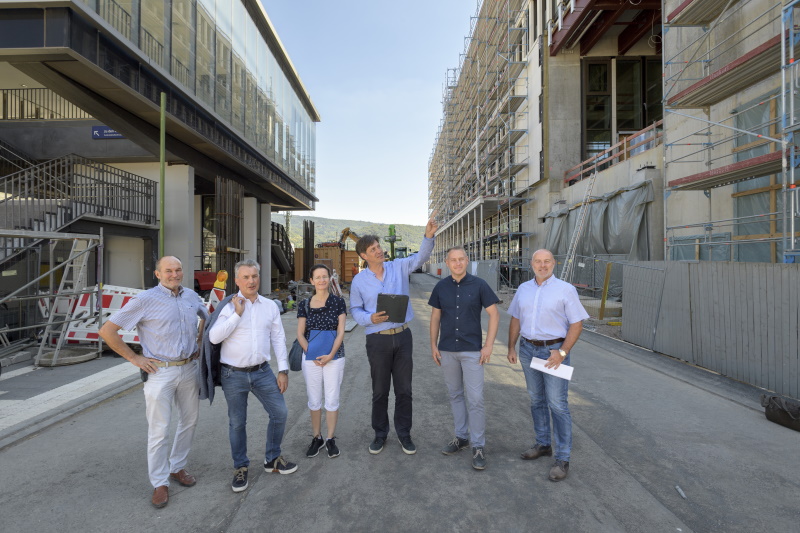 Neue Wege für die Bahnstadt: Mit dem Verbindungssteg vom Hauptbahnhof zum Europaplatz, dem Ausbau des Czernyrings sowie dem Bau der neuen Mileva-Marić-Straße stehen drei wichtige Bestandteile der Stadtteil-Entwicklung auf der Baustellen-Agenda 2022. Der Ausbau des Stegs und des Czernyrings haben bereits begonnen, die Arbeiten an der Mileva-Marić-Straße starten am 15. August 2022. Zum Auftakt seiner Baustellentour informierte sich Erster Bürgermeister Jürgen Odszuck vor Ort über die Bauarbeiten.