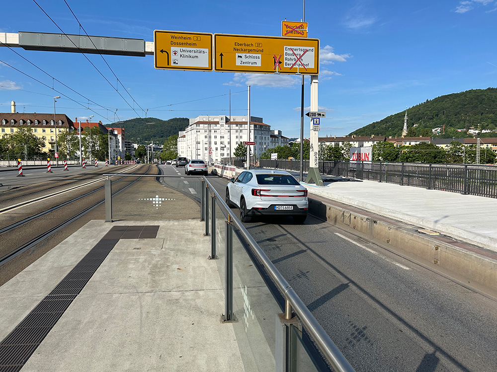 Die Montpellierbrücke, eine der zentralen Verkehrsadern der Stadt Heidelberg, wird seit Anfang 2023 modernisiert. Nur so kann die Brücke weitere 25 Jahre genutzt werden. Gleichzeitig wird die Brücke verstärkt, so dass sie künftig mehr Gewicht tragen kann. Das ist wichtig aufgrund der gestiegenen Lasten des Lkw- und Straßenbahnverkehrs. Die in den Jahren 1974 bis 1976 erbaute Montpellierbrücke ist 48 Jahre alt. Spannbetonbrücken wie die Montpellierbrücke können in der Regel rund 70 Jahre genutzt werden.