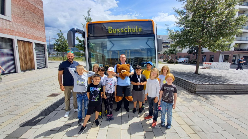 Beim vierten Kinderklimagipfel, den päd-aktiv e. V. in Kooperation mit dem Agenda-Büro des Umweltamtes der Stadt Heidelberg am 15. Juni 2022 in der Grundschule Bahnstadt veranstaltete, stand das Thema „Mobilität“ im Mittelpunkt. 200 Grundschulkinder im Alter zwischen sechs und zehn Jahren hatten zuvor in der Pfingstferienbetreuung die Heidelberger Stadtteile unter die Lupe genommen. Zu Fuß, mit dem Bus und in der Straßenbahn erkundeten sie, wie es um die Mobilität im jeweiligen Quartier bestellt ist. Darüber hinaus absolvierten sie einen Roller-Parcours auf dem Schulhof der Grundschule Bahnstadt und besuchten die Busschule der Rhein-Neckar-Verkehr GmbH. Hier sahen die Kinder beispielsweise auf dem Fahrersitz eines Linienbusses, was ein toter Winkel ist.