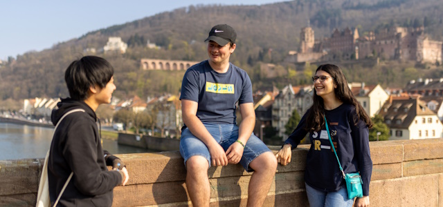3 Jugendliche unterhalten sich auf der alten Brücke